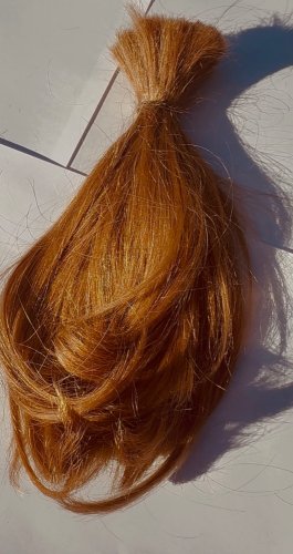 This is a 10-inch virgin redhead ponytail in its natural ginger color, from a single donor. The hair has never been dyed, bleached, permed, or chemically treated and is 100% natural and unprocessed.